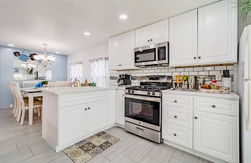 Brew up your morning coffee or whip up everyone's favorite recipes in the well-equipped, full kitchen, and then dine indoors at the table for eight or outside overlooking the canal. This home also includes a comfortable living area with a TV for streaming your favorite channels, a warming wood stove, and a private washer/dryer to help you stay on top your laundry during your stay.