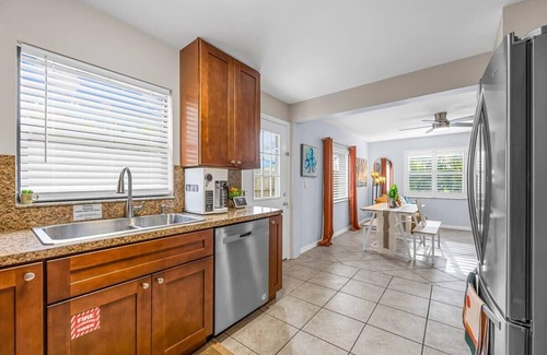 Right in the heart of Cocoa Beach, our townhome offers a prime spot for exploring everything on foot, bike, or even a golf cart. Step out the door and you're moments away from beachside cafes, unique boutiques, vibrant bars, and tasty food. Walk through the amazing murals by local artists and the listen to the occasional live music. Everything you need for a true Cocoa Beach experience is just a leisurely stroll away. Sunbathing, swimming, surfing, and beach volleyball are just a short walk away, and you might even catch a rocket launch while you're here.