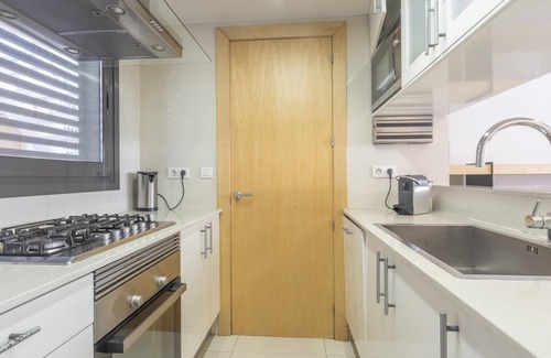 This bright duplex apartment was designed to combine modernity and quality. At the entrance, you will find the fully equipped kitchen with all the utensils so you can prepare your own meals during your stay if you wish.