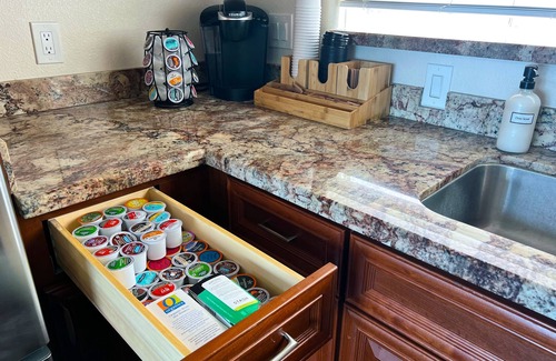 Start your morning off by admiring the views from your spacious 600 sq. ft. deck or drink a cup of coffee next to the fruit trees in your private patio garden. The elevated loft offers a unique perspective and a peak at Avalon Bay.