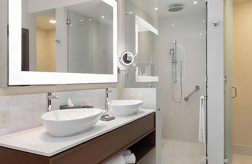 Space & privacy: Separate king bedroom + two full bathrooms (no fighting over mirrors!), plus a living room with a queen sleeper sofa.