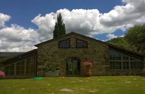 Exceptionally pretty old cottage in the heart of Chianti just 10 minutes walking from the medieval town of Panzano. Completly restored on two floors, very peaceful and exclusive with beautiful views on the Chianti valley.Downstairs: there is large livingroom with wide windows on the Greve valley,a nice dining room and well equiped kitchen,a cosy single room with bathroom with shower and a nice big bathroom with old turkish sinks and a wide shower.Upstairs:a double bed room with tipical tuscan windows"a mandorleto",wood floor and ensuite little bathroom with shower;a confortable room with two single beds that can turn up in a double bed if request always with tipical tuscan Windows and wood floor. All the house is air-conditioned. Outside there is a nice pergola with a big table to enjoy cool dinners when the weather is hot or breakfast-lunch looking at the olive trees and wineyards just beyond the beautiful Villa of VignaMaggio.No ending swimmingpool at exclusive use of the guests with a beautiful view on the Greve valley.