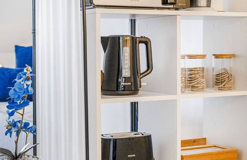 This 2-bedroom, 1-bathroom rental features a living room, a dining area, and a desk. Connect to the free WiFi, or get cozy in front of the Smart TV. Bathroom amenities include a hair dryer, towels, and toilet paper. The kitchen is equipped with an oven, a stovetop, and a refrigerator, as well as a coffee maker, an electric kettle, and an ice maker. Other amenities include bed sheets, an ironing board, bike storage, and housekeeping.