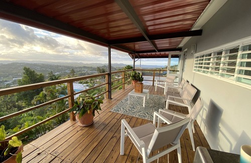 Open space and breathtaking views welcome you at this mountain-side property, overlooking the beautiful town of Cayey, Puerto Rico. Only a short 30-minute drive from San Juan, this mountain top location has the perfect weather all year round for a cool and relaxing stay. Enjoy the breathtaking views of Puerto Rico Central Mountain range from the wood deck, or the rooftop. It’s a great startling point from the great wonders our island has to offer.