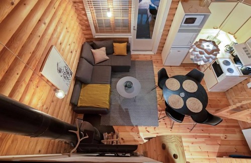 Livingroom/kitchen, bedroom with double bed, loft (16 m², low room height) with double bed. Also electric sauna, washing room, toilet.