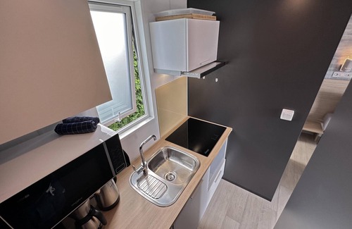 Welcome to the peaceful Seeblick Holiday Village on the shore of Lake Eixendorf in the heart of the Upper Palatinate Forest. This modern chalet is ideal for solo travellers or couples who value comfort and privacy. Enjoy the bright living and sleeping area with fully equipped kitchen, plus your own terrace with barbecue, garden furniture and sun loungers. Perfect for relaxing days by the lake – book now and enjoy Bavaria!
