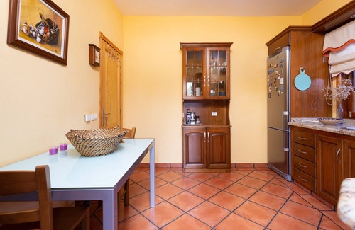 The dream finca with heated pool (with extra cost) is absolutely quiet and is ideal for families or groups of friends and offers on the approximately 3,000 m2 outdoor area a lot of fun for young and old. The pool can be heated and is ecologically treated with saline chlorination. Children can play in the garden, where there is a trampoline, a ping pong table and a basket in the yard. Meanwhile, adults can enjoy the covered barbecue area with outdoor kitchen. That all, with a wonderful view of the Atlantic sea and the mount Teide. Also an outdoor toilet with shower is available. The villa is comfortably decorated and furnished in a high-end country house style and features a cozy living and dining room, a fully equipped kitchen, a bedroom with a comfortable double bed, two bedrooms with 2 single beds and a shower room. All rooms have individual central heating, where responsible and eco friendly use is requested. A covered front terrace with sitting area and a large dining table also guarantee for many relaxing hours in the outdoor area. Parking is easy on the huge yard. The farm is planted with all kinds of fruits that our guests can taste and pick for their own use, such as oranges, tangerines, lemons, avocados, apples, peaches, guava trees, etc. An ideal holiday home for hikers or sunbathing friends, who like to spend a relaxing holiday away from mass tourism.
