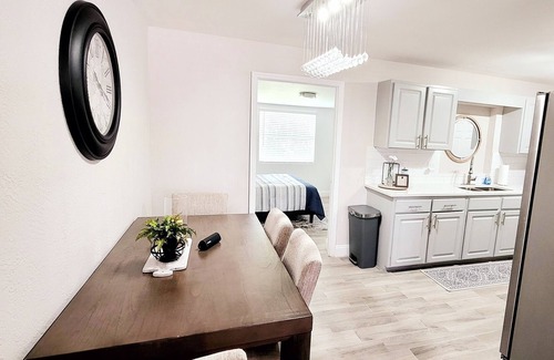 Newly renovated property with modern decor. The home has an open floor plan, 3br/2baths, private backyard, fully equipped kitchen and basic essentials provided. Spacious Backyard with gas bbq grill and fire pit to enjoy all year round. This peaceful location close proximity to shops and restaurants just 10mins away, Disney attractions appx 40 mins.