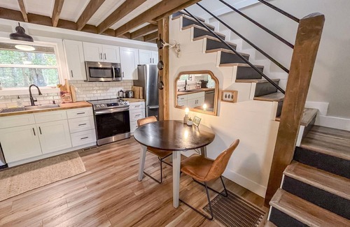 The upstairs features a cozy loft with two queen beds, comfortable pullout couch plus a smart TV for movie nights and (2) desks for any work or writing that you need to tackle during your stay.