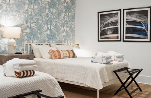 Room 11 - The Coronado. This luxurious ground floor guest room has a private entry area with low foot traffic. The suite is comfortably furnished for up to 4 guests with 2 queen-sized beds. The private bathroom is beautifully outfitted with a tub and shower. Take a dip at the largest pool on Folly Beach or spend some time in the surf with beach access only 1 block away. Amenities include a mini refrigerator, microwave, smart TV, and free WIFI. Book today for lifelong beach memories!