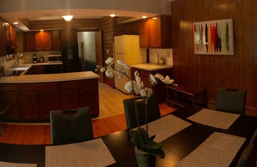 This newly furnished ranch house situates in a quiet estates. It offers couples and small families a perfect home away from home in a forest like setting.