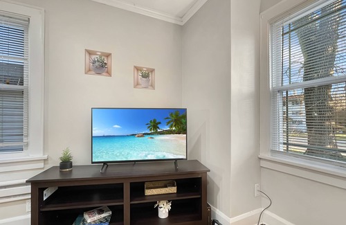 Discover comfort and convenience in our one-bedroom apartment right in the heart of Des Moines - off University just blocks from Drake University. This charmer has beautifully restored hardwood floors, a modern kitchen, Roku TV, shared washer/dryer, and workspace provided. Enjoy easy off-street parking. Savor nearby dining at Louie's Wine Dive and coffee at Friedrich's - literally across the street. 10-min drive to Downtown. Coin laundry for your convenience.