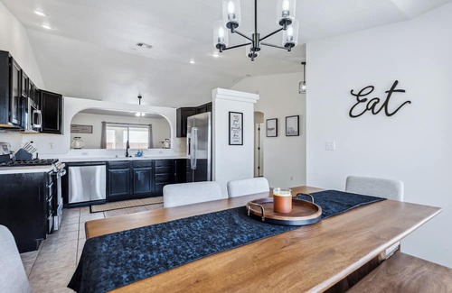 Fun getaway in the heart of Bullhead City! Designed for comfort and fun, this spacious home accommodates 10 guests and shines with a dedicated game room. Enjoy vibrant nightlife at the Laughlin Casinos, outdoor adventures on the Colorado River or Lake Mohave for all in one entertainment and fantastic location!