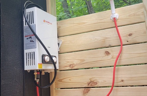 Our heated outdoor shower is closed in the cold winter months. Usually that is from late November- late March. We provide a solar camping shower bag to use for those months. There is also a Ymca 15 minutes from the cabin that offers a daypass for $15 a person and that includes their shower facilities. (We keep our winter prices lower to help cover these costs)