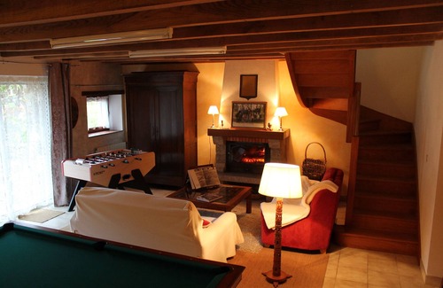 In a renovated farmhouse, independent guest cottage for 6 people. Bright kitchen, living room with lounge, fireplace and pool table. Two bedrooms upstairs with shower rooms: 1 double bed in the first, 1 double and 2 single bunk in the second. Yard and wooded garden outside, protected parking. Very quiet and relaxing environment.