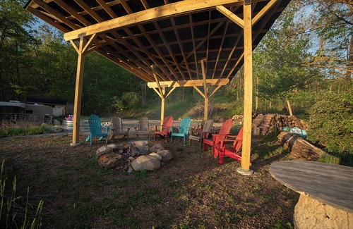 Welcome to a secluded slice of heaven overlooking Conesus Lake in New York’s beautiful Finger Lakes. Twenty minutes from Letchworth State Park and innumerable local attractions is our glamping paradise. A short distance to over 66 miles of hiking trails, three large waterfalls and over 100 smaller cascades. Close to SUNY Geneseo, many local breweries, wineries, restaurants, flea markets, farm stands, Amish country and so many other fun adventures. The property itself is fenced in for your furry family and has a large gazebo fire pit, a stock tank pool, two full bathrooms, washer, dryer, gas grill with side burner for all of your gourmet outdoor cooking and is surrounded by a few more unfenced, explorable acres. The camper features a queen size bed, twin RV bunk beds and a full size pull out sofa. There is both RV style central air conditioning and a window unit in the primary bedroom. A small dishwasher, thermal coffee maker and full size refrigerator with ice maker make your stay a bit easier. Room for 1 outdoor tent if you’d like to bring one along. There is an air mattress as well for your use. Please note-there is no direct lake access for this property but there are numerous public access points close by. Vitale Park and Long Point Park are 2 examples. Please note-there is no internet or television here. We use our phones as hot spots if we need to connect but the point of being here is to disconnect!