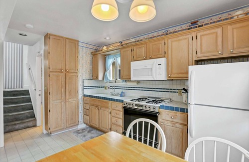The living room and outdoor patio are separated by a classic dutch door that can fully open or just opened at the top that the entire family can use to enjoy the cool ocean breezes. The living room has a medium flatscreen TV so you can keep up with the game or the news. Just a few steps from the main living area, the kitchen serves as a central meeting point - which is fully stocked with cooking/dining gear and basic appliances. You can choose to cook your meal on the outdoor charcoal grill or in the kitchen!