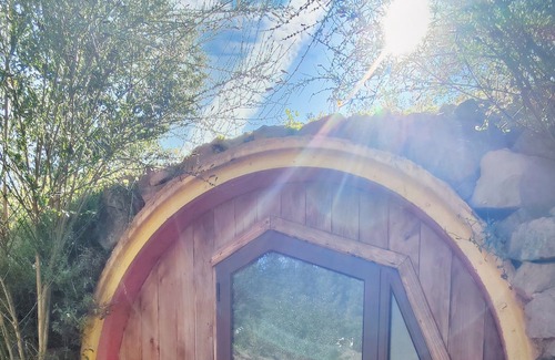 Escape to the Hobbit House, nestled in the forested beauty of central Portugal's Fatela. This circular, rock-built hideaway is an idyllic retreat for romantic couples. Experience enchantment and seclusion in this cozy, rustic haven. Discover the charm of the forest, indulge in intimate moments, and create treasured memories in this extraordinary getaway.