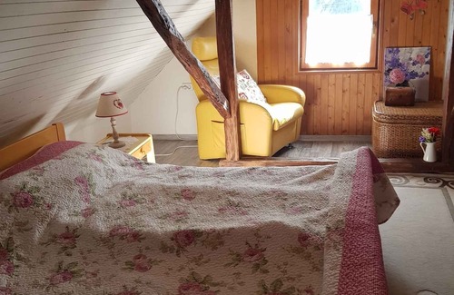 The standig individually holiday home is rustic furnished. The property is located in a residential area, on the outskirts. The domicile is also popular because of the view over woods from the property and the quiet and sunny hillside location. For exclusive use are available: sunbathing area, parasol, sun lounger, grill possibility, terrace, garden furniture, fire place and court.Locationlocomotive, 700 m above sea level. The holiday home is located on a 1400 sqm, closed garden plot with meadow, flowers, bushes and trees, limited by a fence and a hedce. The landlord does not live in the house or on the property. Šumski Raj holiday home is a traditional house over 100 years old. The interior has been completely renovated and nicely decorated according to the location. It has an approximately 1000 m2 landscaped garden that is completely fenced in, so pets can roam freely in the garden. The house consists of a hallway, bathroom with shower, kitchen, dining room/living room. A wooden staircase leads to the attic where there are two bedrooms. One with a double bed and the other with two separate beds. In the yard there is an outdoor terrace overlooking the garden and a stone grill. In a separate house guests have at their disposal a washing machine, sun loungers, outdoor cushions, facilities for children and everything they need to enjoy the garden. Holiday house Šumski raj is an independent house with a large private fenced garden surrounded by pine trees and other greenery. Free parking is available for guests. The first shop is 2.5 km away, so 4 minutes drive from the center of Lokva. The larger town of Delnica is 11 km away and has larger chain stores. The restaurant is 1 km from the house. In Lokve there is an ATM, two shops, a coffee bar, a restaurant, a post office, etc. The lake is less than 1 km away. Petrol station 4km. There is another plot of land at the location mentioned, but the holiday home offers complete privacy thanks to the fenced yard/garden. The access goes directly from the main road (asphalted). Parking lot (for 2 cars) on the property. SpecialFacilities: children's toys, internet access (WLAN) and washing machine. TV reception takes place via antenna. TV channels only in local language. Leisuretable football. Dogsallowed, EUR 10.00/pet per week. DistancesShopping opportunity 2,5 km, restaurant 1000 m. DivisionHoliday home, 2 floors, 3 rooms (including 2 bed rooms), 70 sqm, in total 5 beds (including 1 additional bed). RoomThe entrance in your holiday home is located on the ground floor and leads over the terrace directly in the hallway with doors to all rooms.Ground floor: Eat-in kitchen with 1 additional bed on folding bed, sitting area, TV, dining area (6 seats) and (garden furniture, 2 tables, 12 chairs, 3 sunbeds, parasol). Kitchen in the eat-in kitchen with TV, gas stove (4 flames), oven, fridge (icebox), microwave, electric kettle, washing machine and access to the terrace. Bathroom with shower, 1 sink, WC, hairdryer and window. Top floor: Bedroom with 2 single beds. Bedroom with 1 double bed. Terms of lease and pricesIncluded in the priceinternet access, parking place, electricity, gas, water, final cleaning, bed linen, hand towels, Wireless Internet access. Side costs-Additionally(Payable when booking)/local tax.Deposit:No deposit.