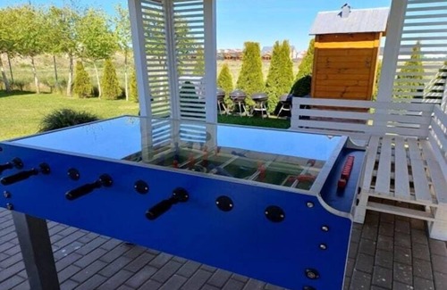 Layout: Ground floor: (open kitchen(electric kettle, toaster, cooker(2 ring stoves, electric), microwave, fridge-freezer), Living/diningroom(double sofa bed, TV(flatscreen), dining table), bedroom(single bed, bunk bed), bathroom(shower, washbasin, toilet)) Barbecue center, Internet access, Parking, Shop, Bike rental, Table tennis, Play area, terrace(roofed), garden(shared with other guests, fenced), garden furniture, trampoline(shared with other guests), slide(shared with other guests), bicycles available, high chair, Garden shed, Swing set, baby crib(free)