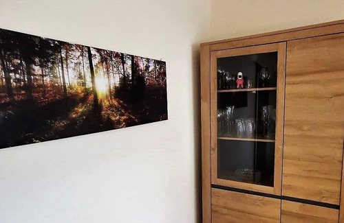 Our house offers you a large living room on the ground floor with a comfortable living and sofa bed, 40 "flat screen TV, radio, Blu-Ray player, information material such as excursion destinations, hiking maps etc. An extra dining room with a large table for 8 people offers you space to eat and be together.
