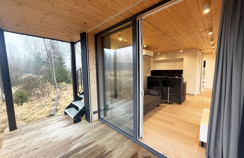 Welcome to a brand new holiday home, perfect for a relaxing stay for up to 4 people. The accommodation has two bedrooms, one with a double bed and one with a single bed, as well as a sofa bed in the living room. There is a fresh bathroom with shower and a fully equipped kitchen with bar stools and seating. The house is located directly adjacent to the forest and has a fantastic view of both the forest and meadow. For extra comfort, there is a staircase up to a lovely terrace on the roof. Outside there is a paved patio with a barbecue and garden furniture, perfect for relaxing in nature.