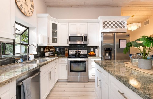 Step into a backyard paradise where fun and relaxation reign supreme. Take a dip in the sparkling pool—then show off your skills at not one but two basketball hoops: a pool hoop for splashy dunks and a full-size court-side hoop for a real game. When you’re ready to unwind, the screened-in patio invites you to stretch out on the oversized couch, enjoy al fresco meals at the large dining table, or simply savor a breezy Florida evening with a cocktail in hand.