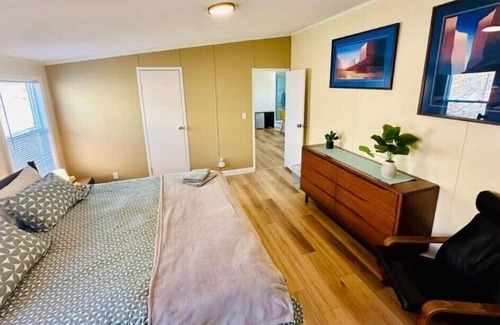 Relax in comfort and style at our house above downtown. Our spacious modern home has been fully remodeled and furnished with a quality mix of contemporary and mid-century style. Enjoy huge views from our porch of the Black Range, Chino Mine and distant Mexican sierras. Playground across the street, views from La Capilla at the end of our block, Boston Hill hiking and biking right above us and only a short walk to downtown Silver City! Our ideal location offers you both privacy & proximity.
