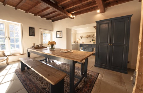 Retaining many of it's original features, this stylish abode offers three reception rooms; a cinema room with 70'' wall mounted television, light and airy playroom featuring a wood burning stove and stunning sitting room with comfortable sofas flanking the roaring wood burning stove. Make memories in the well equipped kitchen around the breakfast dining table whilst cooking up a culinary feast on either the oil fired or electric aga, to be served in the extremely elegant dining room with seating for 12 guests.