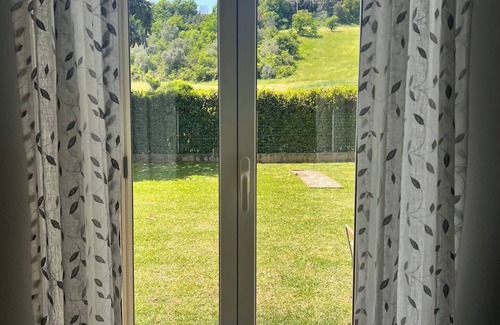 Appartamento con 5 posti letto con giardino privato, 10 minuti dal mare, 20 minuti dal Vaticano, e mezz'ora dal Lago di Bracciano. BBQ, parcheggio privato, 2 camere, divano letto, cucina, bagno, lavatrice, TV, aria condizionata, Wi-Fi.
