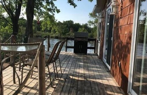 Modern comfortable cottage with 18 foot boat/ 20 HP motor included in rent amount. Bring your boating license or arrange a temporary rental boat license with hosts. Cottage faces South West with full deck/table chairs and private dock off deck.