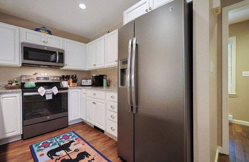 Create meals with ease in the fully equipped kitchen, featuring modern appliances, granite countertops, cookware, and utensils. Start mornings with coffee at the breakfast bar or gather for casual meals at the dining table with plenty of seating.