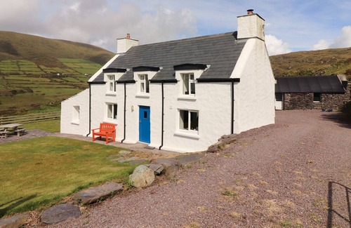 This detached cottage rests near Ballinskelligs, County Kerry and can sleep five people in three bedrooms.
