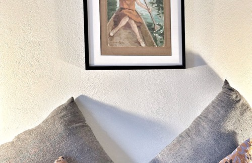 Newly renovated self catering cottage for 2-4 persons in two double bedrooms. Open plan living area with breakfast bar opening onto a kitchen with Smeg oven, fridge and butlers sink. A glass veranda with views over a private garden which offers outside dining and a covered shelter for shade. Comfy beds and armchairs, original art in all rooms adds to the quirky nature of this property. Directly on the Loire A Velo route with bikes available to cycle to Saumur and the Sparkling Wine Houses of St Hilaire St Florent. The Loire river is at the end of the impasse and dogs are welcome in the enclosed gardens. Beach walks and picnics are a must when the river is low. Lots of restaurants and sight seeing close by make for a perfect holiday in the Loire Valley village of Treves.