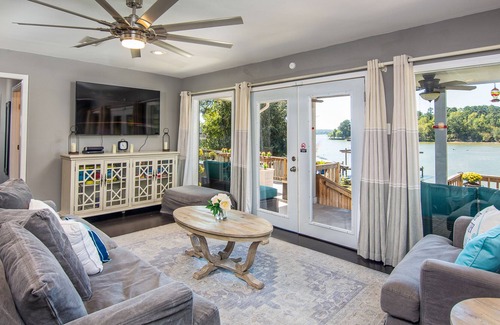 Unwind into vacation mode in the living area while dinner simmers. Wall-to-wall windows showcase sweeping lake views. There are smart TVs in every room makes it easy to catch up on all your favorite shows (streaming available using your own accounts).