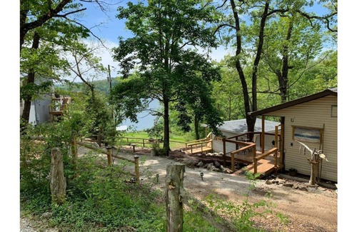 Lakefront, lake view, cozy cottage. Enjoy the lake just a few steps away, or while sitting in your own hot tub on personal deck. This is one of our two our modern-rustic guest cottages, next to our home. If you traveling with friends, and need two cottages, check out our other listing for Water’s Edge cottage. One minute away from Cricket Creek marina/State park, 10 minutes to Big Cedar Lodge/Top of the Rock, and 20 minutes to Branson amenities. 15 miles to world class golfing. Some venues seasonal.