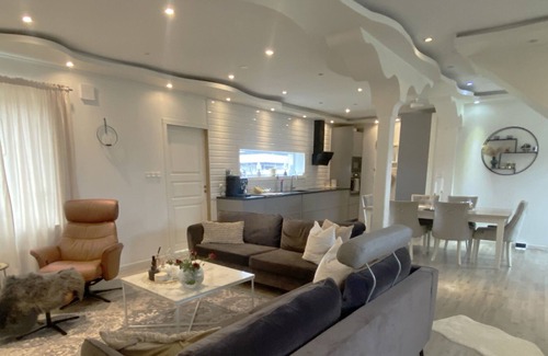 Welcome to rent this fantastic house with large areas for the large group or family. The accommodation is in Yngsjö close to a long fine sandy beach. On the ground floor there is a shower and toilet, a large and spacious kitchen with full equipment, open plan between kitchen and living room with plenty of space. A large bedroom with a double bed, a bed for children up to 11 years and space for two extra beds. Upstairs there is a smaller toilet, small living room and two bedrooms. In one of the rooms, there is a single bed and a bed for children up to 11 years old and in the other room there is a double bed. A sofa bed is also located upstairs in the family room. The basement floor is furnished with a large bedroom with two single beds and a shower and toilet. The basement has an entrance both from inside the house and its own entrance from the outside with a lock. Large garden with terrace, barbecue and garden furniture for lovely summer days.