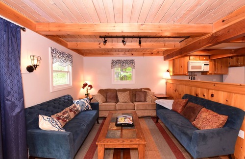A great vacation awaits you at this lovely Conway, NH cottage with 5 bedrooms, 2.5 baths and sleeping accommodations for up to 14 people without bunk beds! This home offers beautiful open beams in the living and dining area and large windows throughout the home that offer plenty of natural light. During the winter months there is a beautiful un-obscured view of the Moat Mountains which can be enjoyed from the master bedroom as well as the loft. The summer months are just as enjoyable as you are only a short distance from beautiful Pequwaket Beach.