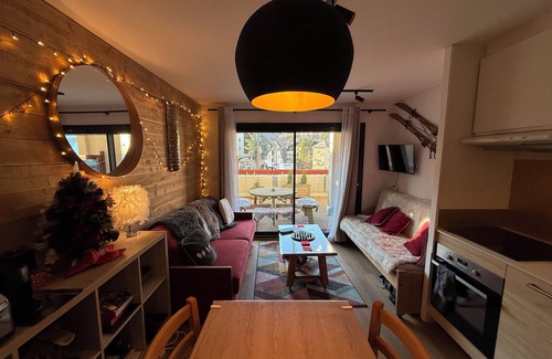 Le Saint Étienne building is centrally located in the picturesque village of Auron. The appartement is situated on the 1st floor above shops. Recently renovated with modern amenities the apartment offers a comfortable setting for an enjoyable holiday. Large south facing terrace overlooking the slopes. From there, you can do everything on foot. (ski lift just across the street)