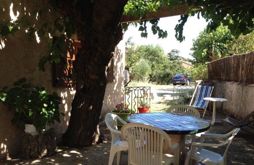 The edge of the village of Garde Freinet, small independent with green flag around, flagstone terrace and garden furniture, electric barbecue. Private parking. Close to all amenities, swimming pool, numerous trails for walks in the Massif des Maures. Ground floor: Living room with corner kitchen, TV, DVD player, click - Clack, a bedroom with a double bed (140cm), shower room, wc independent. Electric heating. 1 small accepted animals. Possibility one extra person.