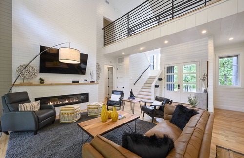 NEW June 2023! Let It Slide is a cabin the whole family will love. This modern farmhouse getaway features two slides off the back deck for kids along with hammock chairs, swing bed, hot tub, outdoor dining table, fire pit, foosball table, sliding glass living room doors, electric fireplace, and more. With 3 king suites and additional sleeping space for 10 more guests, Let It Slide can comfortably accommodate up to 16 and is perfect for 1-3 families. Sitting on nearly 3 acres in the prestigious Woodland Hills neighborhood, this cabin offers rare seclusion and beautiful private forest views. We can’t wait to host you at this cozy cabin!