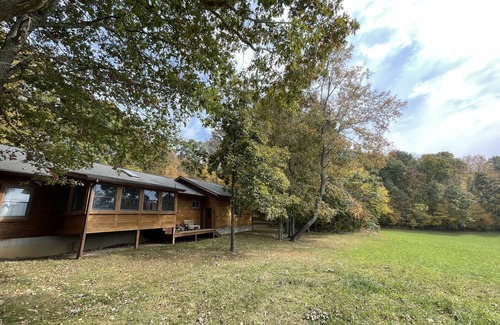 This cozy, secluded cabin sits on the edge of a 1000-acre farm overlooking rolling hay fields. This is the perfect spot for solo travelers, families, or couples to relax, recharge, and enjoy the outdoors. Find yourself drinking coffee, finishing up work, or deep in a good book in the sunroom. Then fill your day with outdoor activities throughout the Allegheny Highlands. At night, grill out and enjoy dinner around the table. Then light a bonfire and stargaze before ending the night.