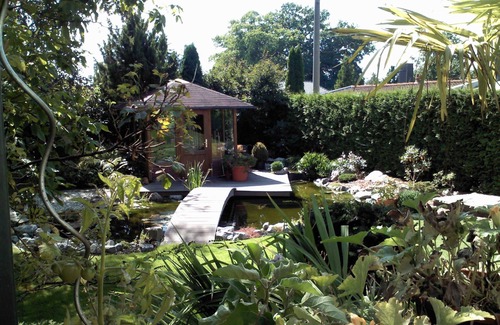 On the property there are two terraces which can be used by guests. The garden features a foliage house and a fire pit. A small pond with a wooden bridge provides access to the romantic foliage house that can accommodate even if the weather for 4-6 persons. The garden is available for all guests. All guests of the house are a total of two parking spaces in the double garage and a parking space on the premises. Further, free public parking is available 50 meters away.