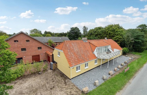 On Lyngså beach, about 700 meters from the water, you will find this beautiful country estate with room for up to several families. It offers a bright, pretty interior with beautiful details such as the wood-burning stove. In the authentic, rustic atmosphere you will find the ideal conditions for a cozy, carefree vacation. Enjoy a game of pool or table football and gather around the long dining table for convivial meals.
