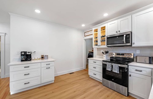 2. **Kitchen:** Modern and fully stocked, it includes new appliances like a refrigerator, microwave, stove/oven, tea kettle, French press, and coffee maker. Whip up your favorite meals with our provided pots, pans, and cooking essentials.