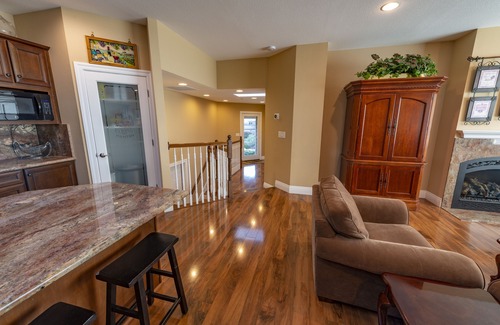 The modern, yet warmly decorated living and dining areas will comfortably accommodate our guests.