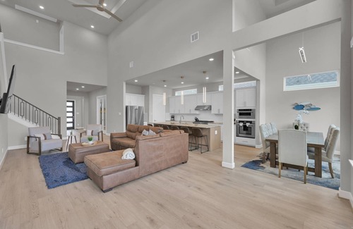 Experience ultimate relaxation at this stunning, luxury home located directly on the canal of Lake Conroe. With 5 bedrooms and 4.5 bathrooms, including 3 luxurious suites with king beds and a fun bunk room with 4 twin beds for the kids, there's plenty of space for everyone. Additional sleeping options include 2 pull-out queens and a twin pull-out bed in the game room.