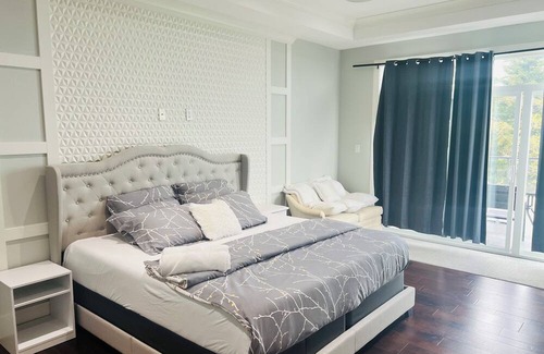 Enjoy ocean view living in a spacious house. Roof deck is exclusive. Features include spacious patios. There are two kitchens attached. Main acrylic kitchen and attached spice kitchen. It is a level entry house with wheelchair accessible entry. Includes wifi, two smart TVs. Office has a mac apple computer. There is a dining table alongside ocean-view. Kitchen has a central island. There is kitchen aid fridge, two mile dishwasher, electric stove in the main kitchen. And a gas stove oven in spice kitchen. There is a microwave oven, coffee maker, sandwich maker, and electric kettle. There are wine glasses, cutlery for more than 10 people. Large motorized blinds. Sunrise and sunset views from the decks 180 degree ocean-view. Georgia strait is visible from the view. There are a few parks on walking distance. Liquor store and pipers pub 3 minutes away. Around 20 minutes from departure bay terminal. Islands biggest mall woodgrove mall is 10 minutes away. Neck point park is 5 minutes away. Departure bay beach 10 minute drive. The master bedroom has a comfy king size bed. With double sink washroom, bathtub and a walk in closet. Three are three extra bedrooms on second floor. 2 bedrooms have a shared washroom. Third bedroom has on suite washroom and walk in closet. As per the city by law I will be on the third floor at the bottom. With a separate entry. House is ideal for events and parties. Private and peaceful Neighbourhood. Hope you enjoy your stay. Thanks