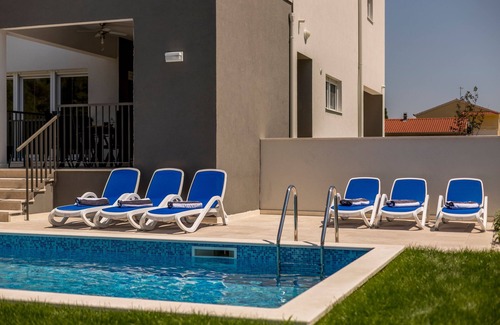 House can accommodate 8 guests. Beds are situated in 4 sleeping rooms, within 288m2. Guests can use a private terrace to enjoy the warm summer evenings. For full enjoyment and relaxation there is a private barbecue for this accommodation guests only. During stay, there is a private pool for relaxation and pleasure.