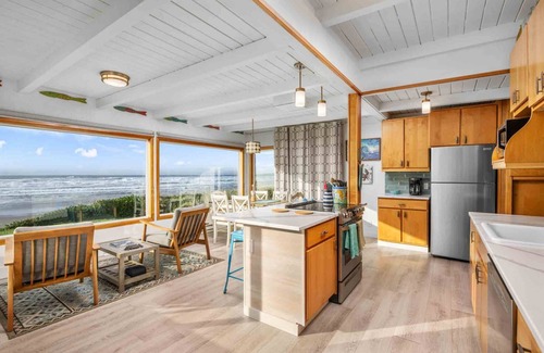 Magnificent Oceanfront Retreat, Pet Friendly, Single Level, Deck and Fire-Pit w/Views, EV Charging is located in Rockaway Beach. Magnificent Oceanfront Retreat, Pet Friendly, Single Level, Deck and Fire-Pit w/Views, EV Charging provides accommodation, featuring TV, Barbecue/Outdoor Cooking, Child Friendly, among other amenities. This House features TV, Barbecue/Outdoor Cooking, Child Friendly, to make your stay a comfortable one.
